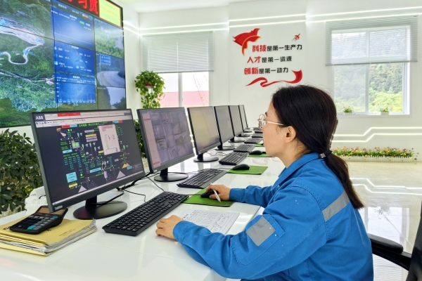 礦山分廠局控操作員李良瓊的視線在監(jiān)控屏幕間快速流轉(zhuǎn)。她左手同步更新生產(chǎn)數(shù)據(jù)臺賬,右手實時調(diào)節(jié)設備參數(shù),數(shù)字化看板上的綠色運行曲線,見證著這位“工藝線守護者”護航設備高效運轉(zhuǎn)的智慧。(胡萬禹/攝)