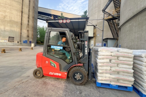 水泥分廠叉車司機胡順斌眼神正專注地望著倉庫內(nèi)堆積如山的托盤水泥,雙手熟練地操控著方向盤。每一次精準的操作,都是為了更好地組織水泥發(fā)運。(馮圣乾/攝)
