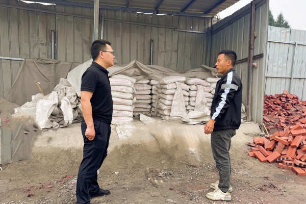 銷售處市場部業(yè)務員張力林正在拜訪水泥客戶,摸排和了解當前市場水泥需求,兩人身后堆滿的海螺牌水泥,交錯的影子投射在水泥袋上,勾勒出合作無間的默契。(李云/攝)