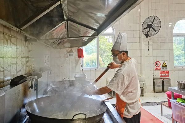 辦公室食堂廚師李晉濤正在制作全體職工午餐,他常說:“后勤保障工作很重要,現(xiàn)場職工太辛苦了,在‘能量補給’上面一點兒馬虎不得?!保盍?攝)