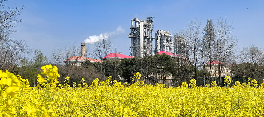 金色的油菜花遍布公司周邊,與公司內(nèi)的員工宿舍和水泥窯相映成趣,勾勒出一幅絢麗多彩的春日田園畫(huà)卷。