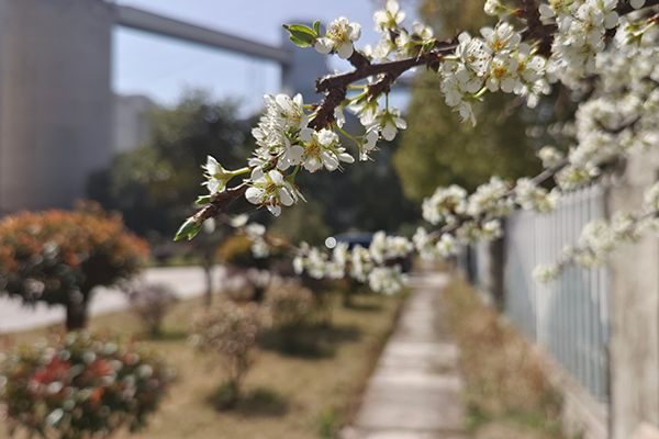 春日的暖陽(yáng)斜斜地鋪在碼頭廠區(qū)的鐵柵欄上,幾枝白桃花從青灰色的磚墻上探出。江邊貨輪的汽笛聲里,裹著若有若無(wú)的香氣,把金屬與混凝土的世界,釀成了春天的模樣。