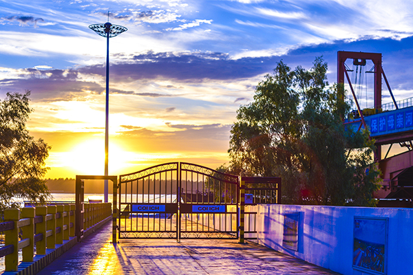 夕陽(yáng)把碼頭鍍成一片金箔,遠(yuǎn)處長(zhǎng)江的水流切開(kāi)霞光浸染的水面,粼粼波光宛若撒落的碎鉆。
