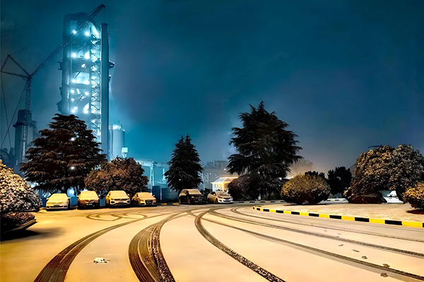 雪花紛紛揚(yáng)揚(yáng)地飄落,頃刻間化作了一個(gè)銀裝素裹的世界。雪花覆蓋在設(shè)備和水泥庫(kù)上,仿佛為它們穿上了一件厚厚的白色棉襖。