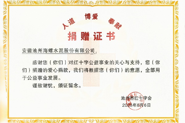 近日,池州海螺收到了一份特別的榮譽——來自池州市紅十字會頒發(fā)的榮譽證書。這份證書,是對池州海螺在2025年池州市“5.8人道公益日”活動期間的積極組織的暖心見證與誠摯謝意。