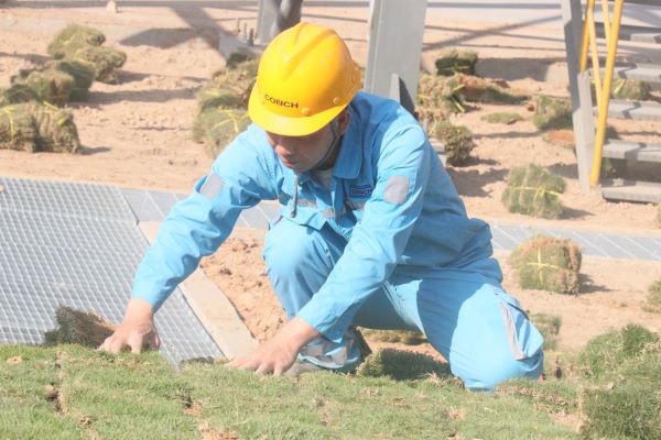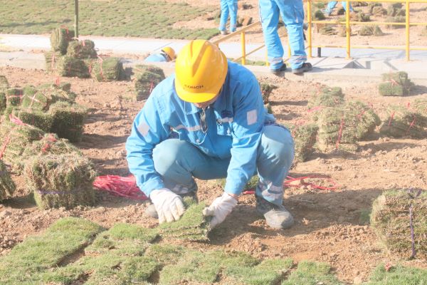 活動(dòng)現(xiàn)場中,大家有條不紊地進(jìn)行場地清理,清除碎石,對鋪設(shè)區(qū)域進(jìn)行翻耕,打碎土塊、平整地面,鋪設(shè)草皮。在大家的共同努力下,一塊塊草皮緊密銜接,構(gòu)建出一道致密的生態(tài)護(hù)坡,讓現(xiàn)場環(huán)境煥然一新,一抹抹綠色映入眼簾,為早春廠區(qū)增添了一抹盎然生機(jī)。